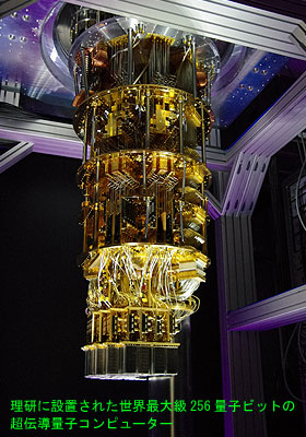 これに続き、今年4月に世界最大級の256量子ビットを搭載した超伝導量子コンピューターが理研に設置された。2号機(64量子ビット)の延長線上にあるマシンだが、同じサイズの希釈冷凍機内で4倍の高密度実装を可能にするため、極低温状態を保つことができる熱設計の改良が施されており、拡張性の高い3次元接続構造を活用して4倍の量子ビット数を実現させた。量子ビットのパッケージは新設計され、量子ビットの特性のばらつきも改善されているという。