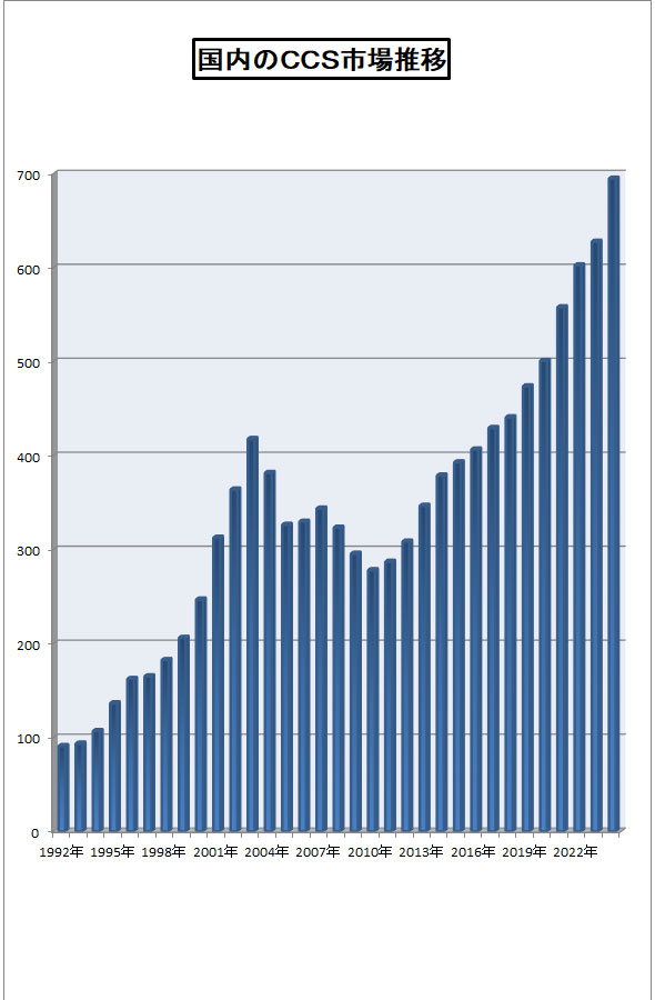 こうしたCCS関連の各種ソリューションを開発・販売している国内主要ソフトウエアベンダーの売り上げの推移をもとにした2024年度の市場規模は、CCSnewsの推定で約694億円。前年度に対して10.7%成長したとみられる。このほかに、受託研究スタイルのAI系ベンダーが関連する市場規模も、少なく見積もっても32〜33億円に達していると考えられる。